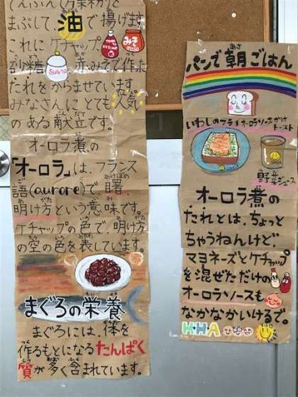 です。オーロラ煮は、ケチャップなどの味付けなので、甘くて子どもたちにも人気のある献立です。