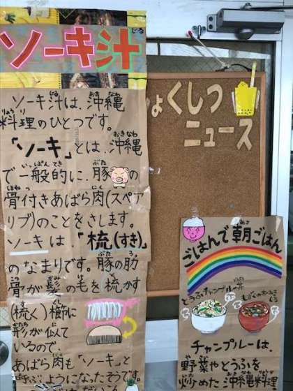ソーキ汁の名前の由来を知っていましたか?岡山先生が作ってくださっているポップをよく読んでみてください。