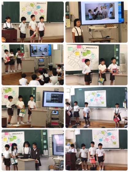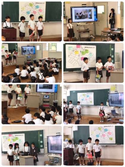2年生は、生活科でまち探検をした班ごとのまとめを発表していました。タブレットを上手に活用できていました。