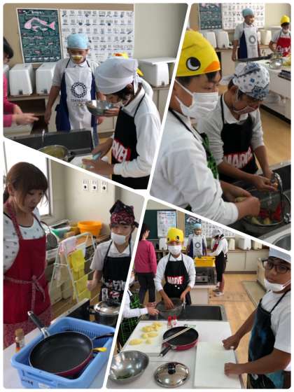 ?今日の6年2組は、家庭科の学習で調理実習をしました。くふうしよう、美味しい食事をテーマにじゃがいもを使った調理をしました。ベースとなる粉ふきいもを作り、そこから発展させて、いももちやツナ入りハンバーグ風にアレンジしました。グループで安全や手順に気をつけて協力しながら美味しいものを作ることができました。