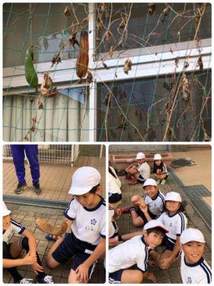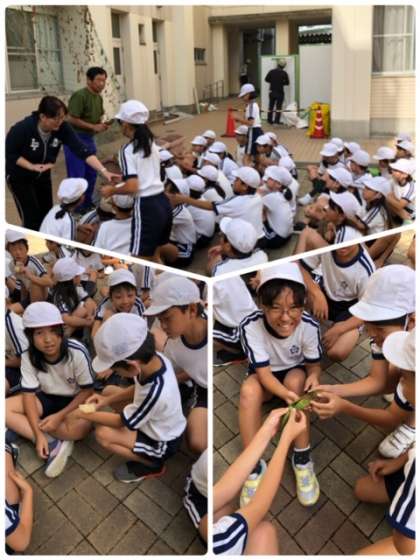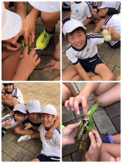 4年生が4月からお世話してきた、へちまと瓢箪を手に取り、観察しています。中からはおもしろい音が聞こえたり、触ってみるとスポンジのような感触だったりととても興味深く学習しています。
