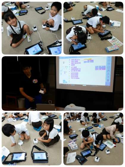 タブレットに入力したプログラムがしっかりとロボットに出力され、ロボットが動くと、子どもたちからは何度も歓声が起きていました。