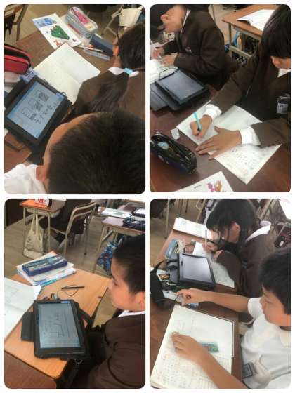 その後、タブレットにペアで考えたことを書きこみ、全体に発表して、考えを出し合いました。