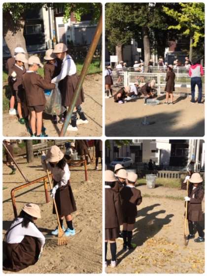 朝礼に引き続き、全校児童で大和田中央公園に行き、ふれあい清掃を行いました。