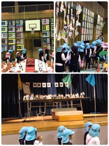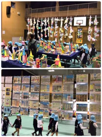 5時間目、今度は大和田幼稚園の皆さんが、小学校の作品展を見学に来ました。