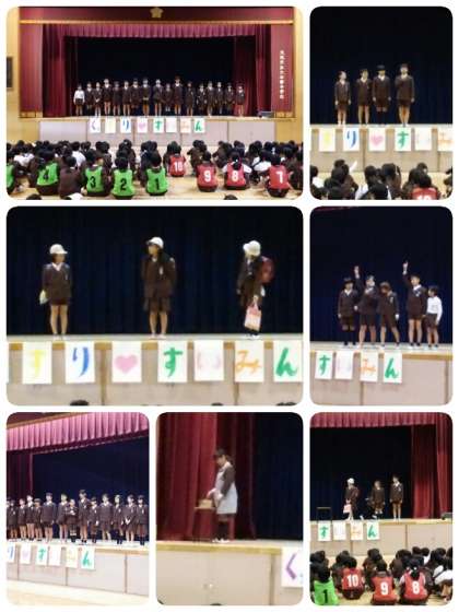 また劇の中でクイズを出して、たてわり班で話し合い、考える場面もありました。