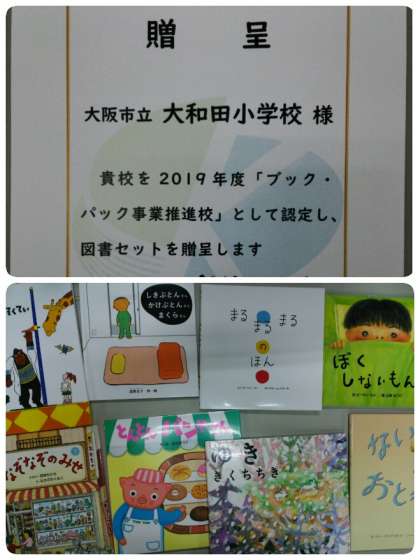本日放課後に、公益財団法人日本教育公務員弘済会大阪支部より、図書セットのブックパックを贈呈していただきました。