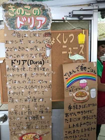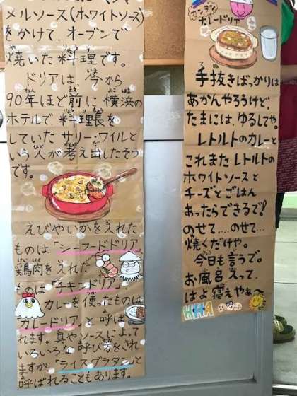 見本の見せ方、給食調理員さんも、いろいろ工夫してくださっています。