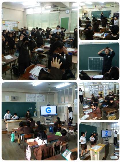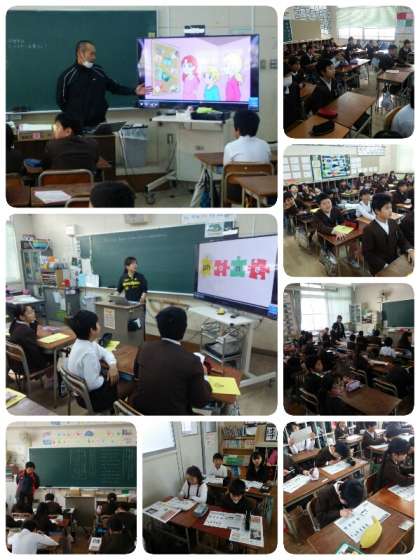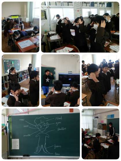 今日は、「あたま、かた、ひざ、ぽん」の英語バージョンを歌う学級が低中高学年の多くのクラスで見られました。