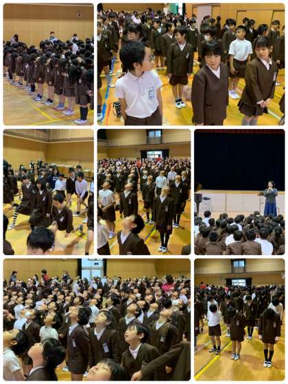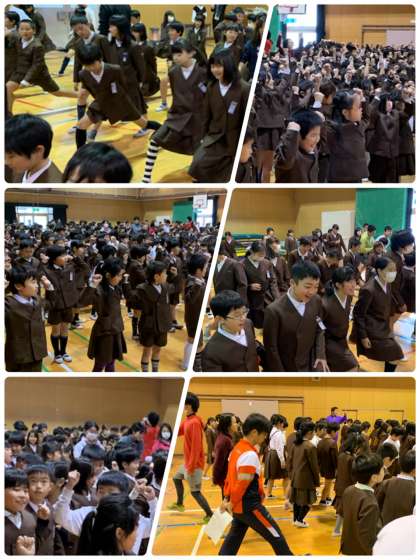 20分間休憩にあった縄跳びの後は、講堂に全学年が入り、京都フィルハーモニーの出前ワークショップがありました。