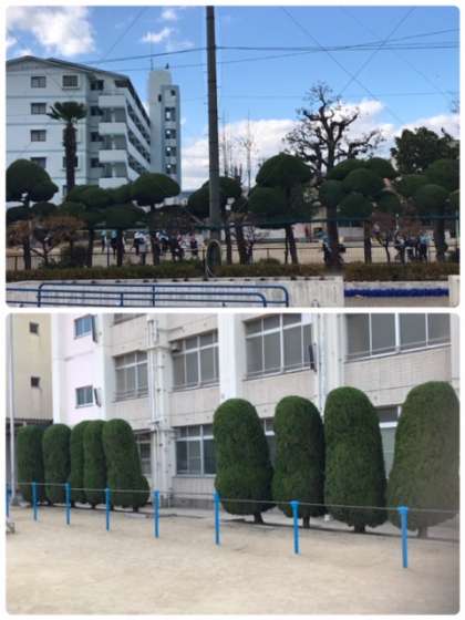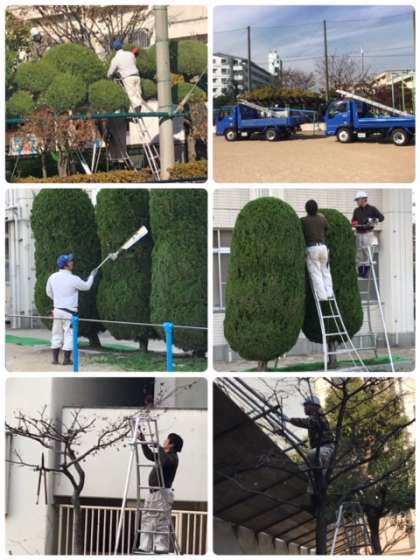 運動場やプロムナード、中庭にある樹木を業者の方に剪定していただきました。