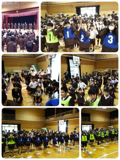 集会委員会のみなさんがお手本を見せたり、動作をしやすいようにゆっくり歌ったりとリード役をし、全校児童が頭、肩、ひざ、つまさき、目、耳、口、鼻を順番に触る動作もつけて、元気よく歌うことができました。