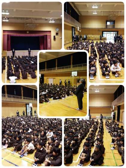 次に生活指導の米田先生から、冬休み前にした約束の確認、生活リズムを早く学校のリズムにもどすこと、冬休み中に何か困ったことがあった人は担任の先生に話をすること、1月の生活目標「登下校の時刻を守りましょう」などについて、お話していただきました。