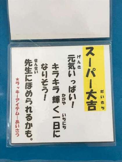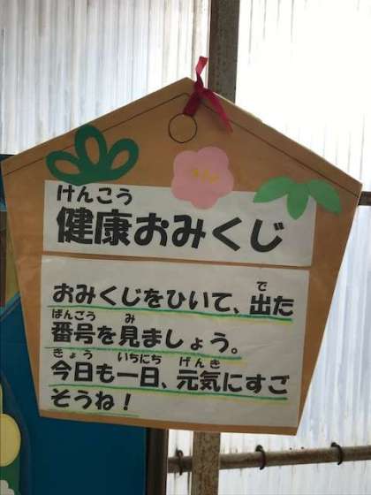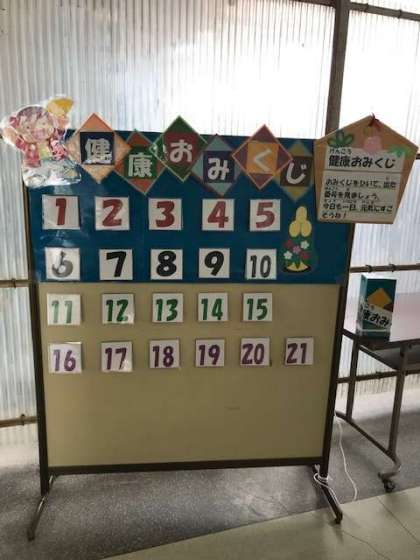 実は保健室の前に、とても立派な健康おみくじができています。一日に一回、好きな番号を引いてみてはいかがですか?中にはスーパー大吉もあるようですよ。
