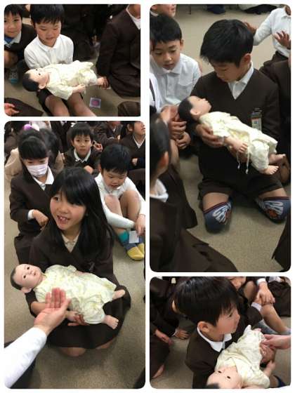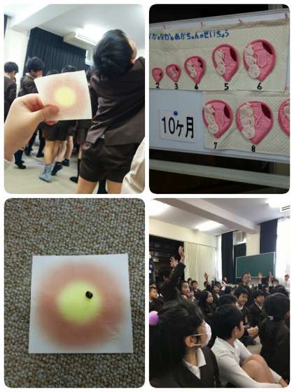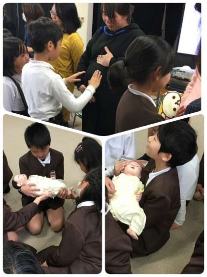 「おなかのなかのせいちょう」という妊婦さんのお腹の中の様子がわかるものを見せていただいたり、妊婦さんのお腹を実際に触らせていただいたりもしました。