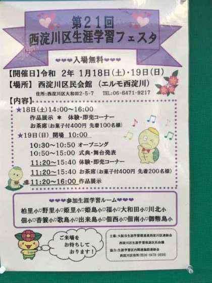今週末は、生涯学習ルームのフェスティバルがおります。ポスターを参考に、皆さんもぜひどうぞ。