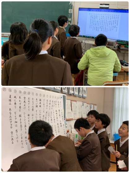 今週の6年生は、国語で俳句の学習をしていました。今日は今まで学んだものを生かして作成した俳句を並べて句会をしました。