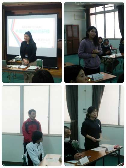 本日の授業者の振り返りや、参観者の感想など意見交流をし、その後講師の上田先生による指導高評と外国語活動の指導に関する研修をしていただきました。