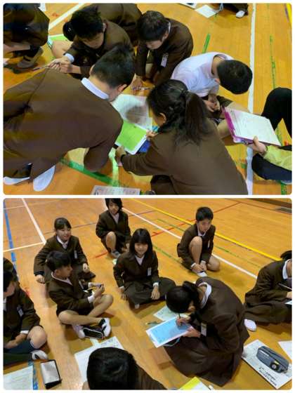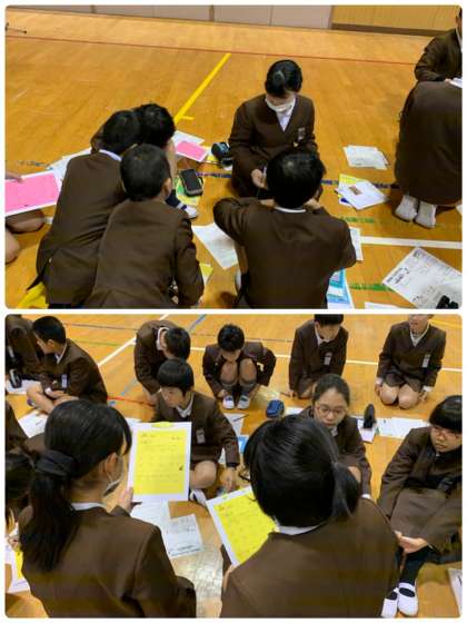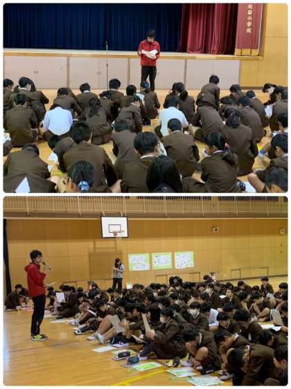 朝会後、5、6年生は今週金曜日にあるなかよしフェスティバルの説明を受けました。