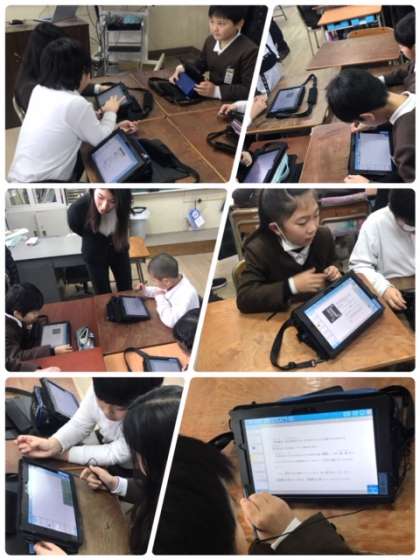 5時間目、3年生が社会科の研究授業に取り組みました。昔のくらしについて考える授業で、今日は洗濯板をテーマに討論しました。ICTを活用した授業で、子どもたちもタブレットを上手に使いこなしていました。