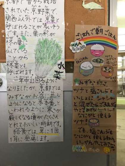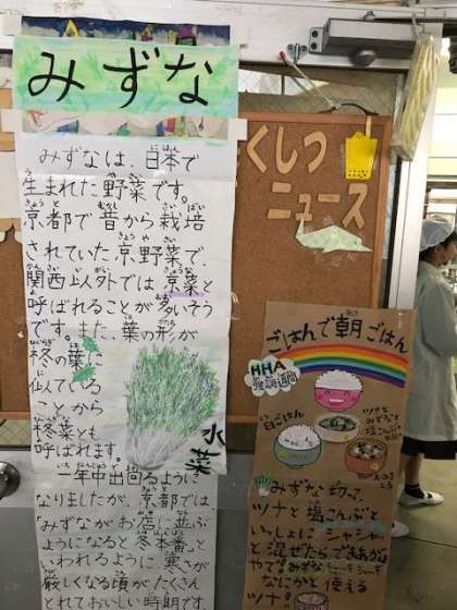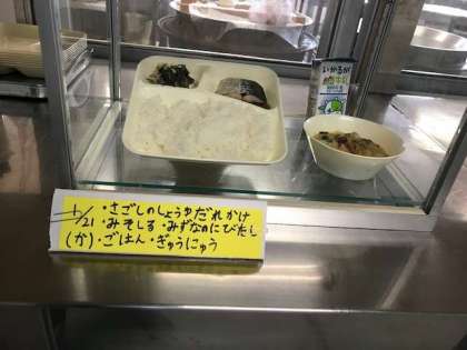 さごしの醤油だれかけ、味噌汁、水菜のにびたし、ご飯、牛乳
