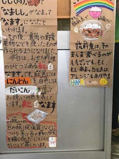 筑前煮、ひじき豆、紅白なます、ご飯、牛乳
