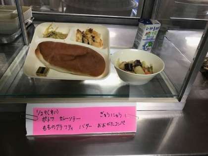 ポトフ、カラーソテー、桃のクラフティ、バター、大型コッペ、牛乳
