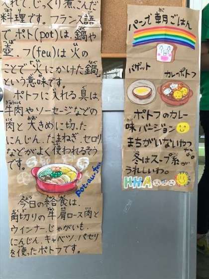 です。ポトフは、よく味のしみこんだ身体の中から温まる献立です。美味しくいただきました。