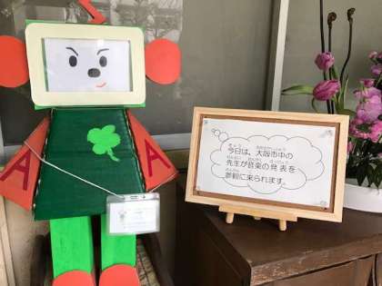 今日は、大阪市小学校教育研究会総合研究発表会音楽部の発表を本校で行います。