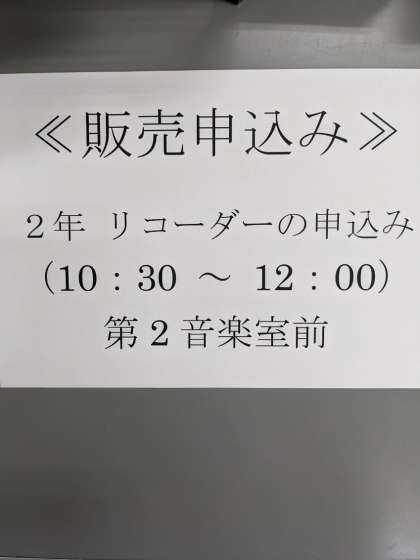 また、校内で販売業者による2年生のリコーダーの申込みも行いますので、2年生の保護者の方は、そちらもお願いいたします。