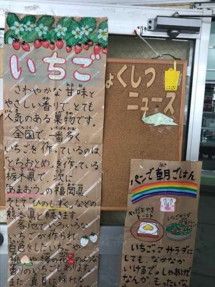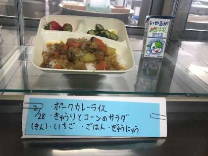 です。スパイシーなカレーと、甘いいちご、今日も美味しい給食、ありがとうございました。