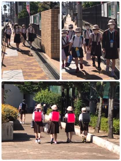 本日の前半のグループの子どもたちが、登校してきました。