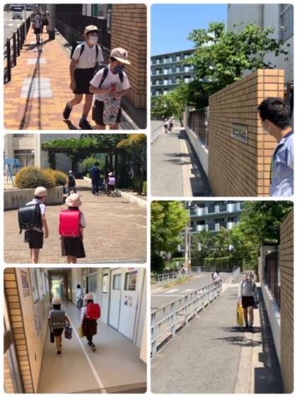 前半のグループが下校した後、教職員で協力して消毒して後半グループを迎えています。
