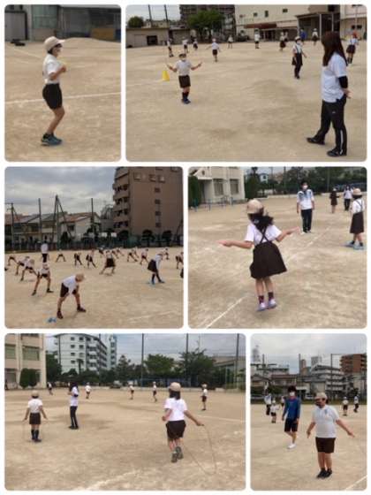 運動場で、それぞれ工夫して、無理のない程度で、運動にも取り組んでいます。