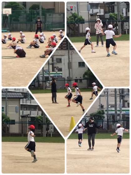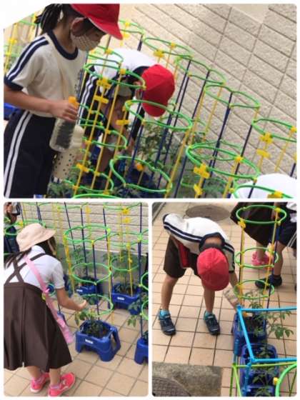 プチトマトに水やりをして、運動場で身体を動かしました。