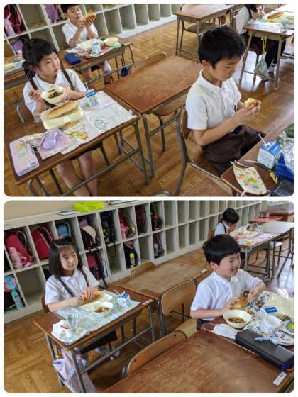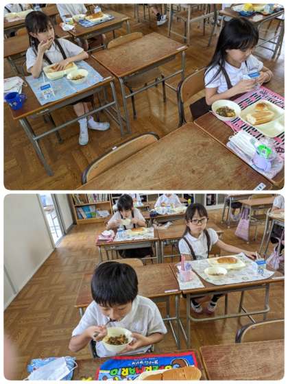 今日は小学校で久しぶりに食べる、待ちに待った給食です。