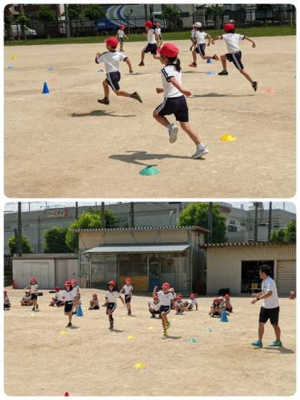 しっかり腕を振り太ももを上げる動きや、手と足を素早く小刻みに振る動きなどをして走る様子です。