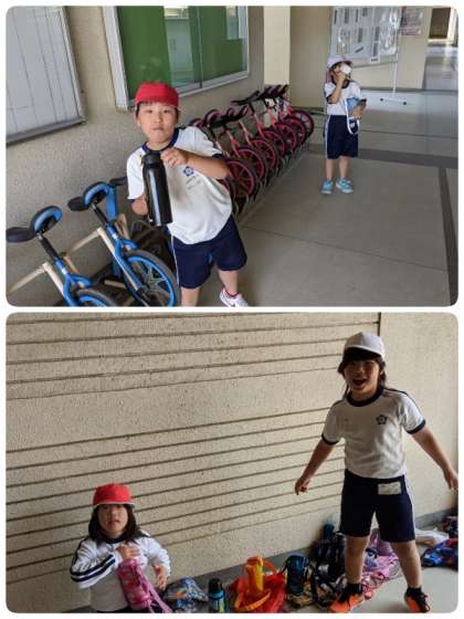 こまめに休憩をとり、ソーシャルディスタンスも意識して、水分補給をしています。