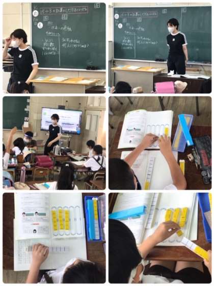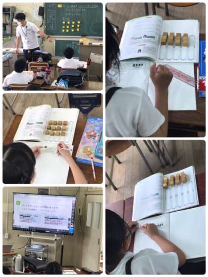 3年生が、ブロックを使いながら、わり算の仕方について考えていました。