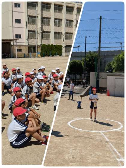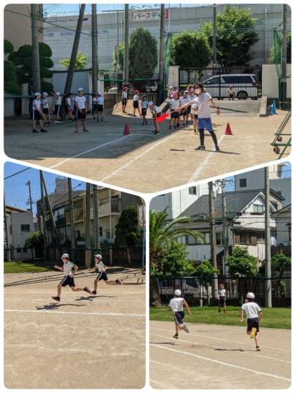 今週は、50m走やソフトボール投げなど運動場でするスポーツテストを実施しています。