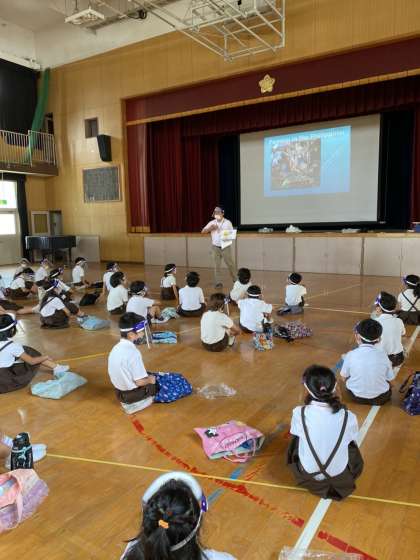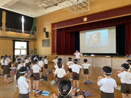 今日は4年生が外国語活動の時間として、先生の自己紹介を聞いたり、発音したり、ダンスをしたりして、ネイティブの発音にたくさん触れる機会となりました。