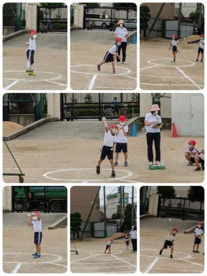 今日は、1年生と4年生がソフトボール投げと50m走のスポーツテストを実施しました。 1年生は、初めてのスポーツテストでしたが精一杯投げて、走りました。