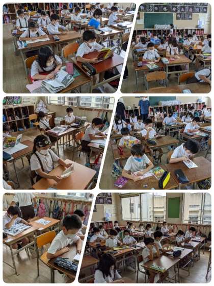 一人で本を手に取り読書するクラスもあれば、モニターに本を映して図書係さんが読み聞かせするクラス、担任の先生が読み聞かせするクラス、小学生新聞の記事を読むクラスなどバリエーション豊かです。