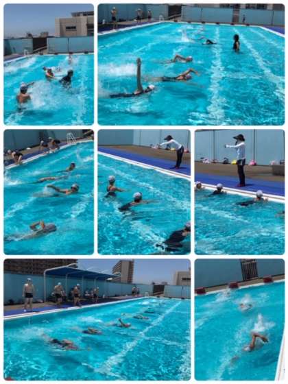 約束を確認し、久しぶりの水泳学習で、色々思い出したながら取り組みました。クロールと平泳ぎでの泳力測定をしました。