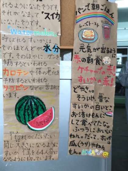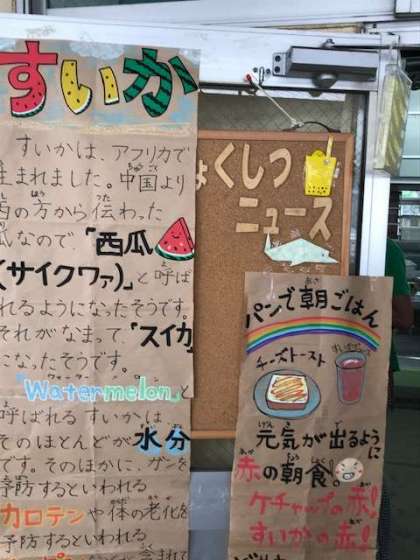 蒸し暑かった今日、スイカを見て、大喜びの子どもたちが多かったです。
