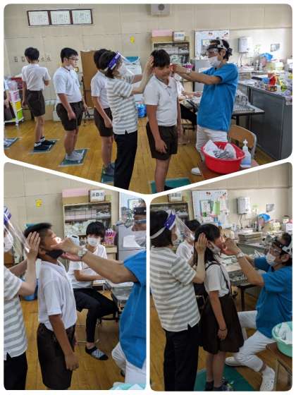 今週は耳鼻科検診と眼科検診を実施しました。(4年生から6年生は明日眼科検診を実施します。)