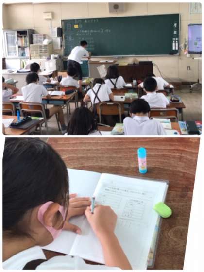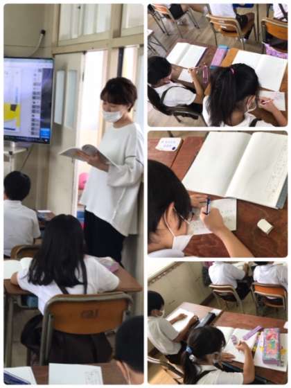 2組では、国語で、しっかり聞いたことをもらさずメモを取る練習をしていました。