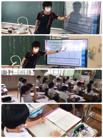 1組では、山内先生と国語の説明文の読み取りの学習をしていました。ワークシートに大事なことをまとめていきました。