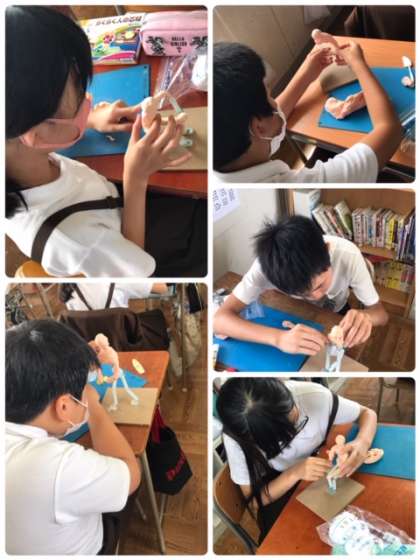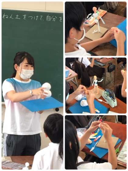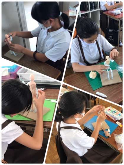 今日は連続3時間図工で芯材に粘土をつけていく活動に取り組みました。すでに芯材は作ってありました。まずは粘土を用意して、着色し、順々に仕上げていきます。