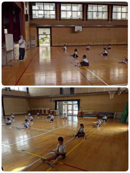 講堂でしっかりと間隔をとり、リコーダーの学習をしました。